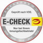 Der "E-CHECK" ist eine Dienstleistung des deutschen Elektrohandwerks, der mit seiner Prüfplakette die Sicherheit von Geräten sowie elektrischen Anlagen und Installationen bestätigt. Er kann sowohl für Gewerbe und Industrie als auch für Privathaushalte mit einer anerkannten, normengerechten Prüfung durchgeführt werden. Die "E-CHECK"-Prüfplakette bestätigt nach erfolgreich durchgeführtem Check: den ordnungsgemäßen Zustand der elektrischen Anlagen und Geräte gemäß VDE-Bestimmungen (Verband der Elektrotechnik Elektronik Informationstechnik), die Aufzeichnung des Zustands der Anlagen und Geräte in einem detaillierten Prüfprotokoll, inkl. zu behebender Mängel. Der "E-CHECK" kann mit einer Energiesparberatung verbunden werden.